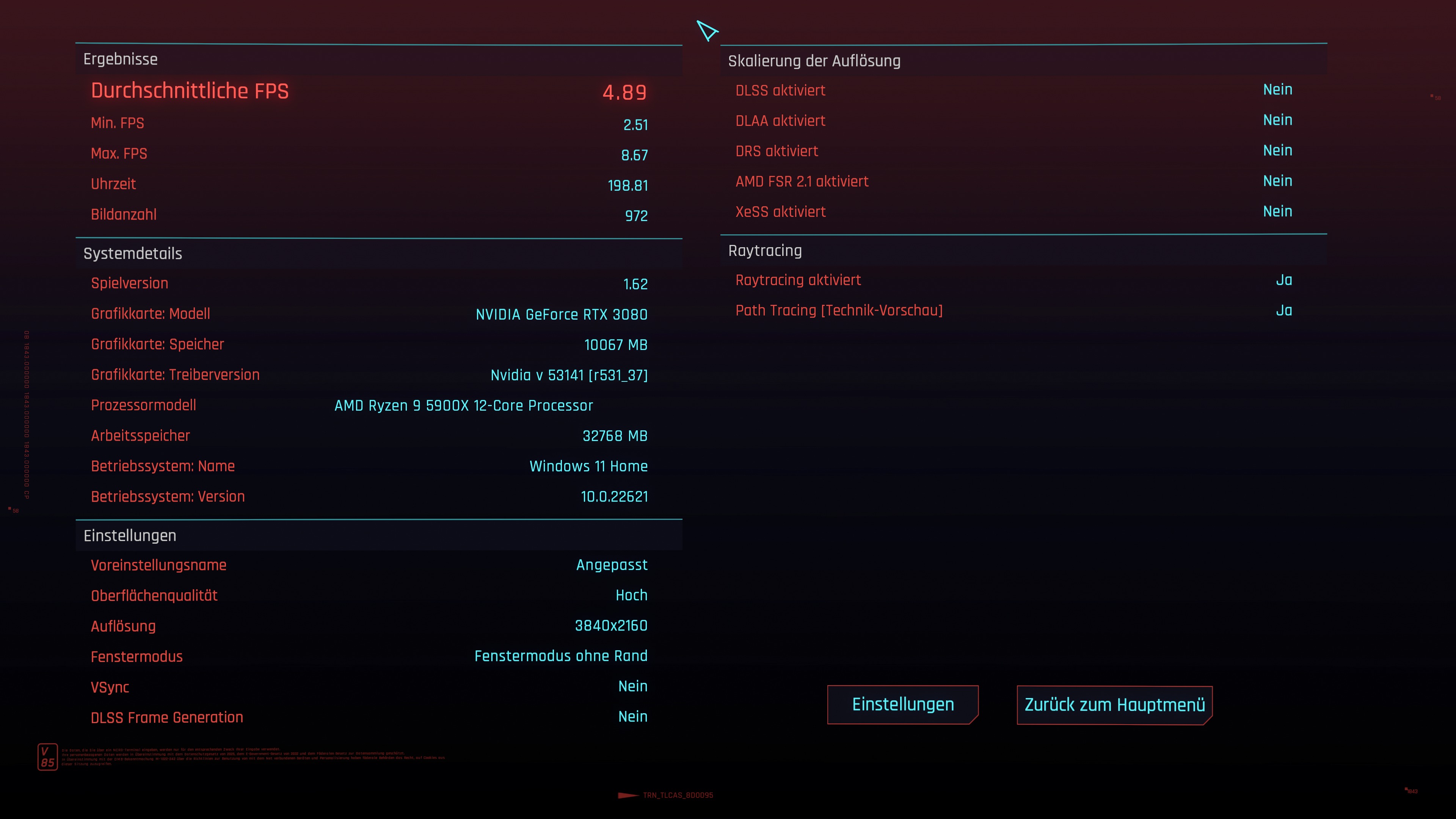 Danke für die Ergebnisse! Kannst du vielleicht noch den einen oder anderen Screenshot machen? Ich glaube bei neuen Highscores mach ich die verpflichtend. ^^Laphonso schrieb:System: RTX4090, 13900KF, DDR5-6000CL30