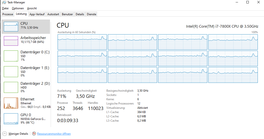 Habt ihr irgendeine Idee wie ich mehr rausholen kann oder dieses Auslastungsproblem fixen kann? Kenne ich mich nicht allzu gut aus mit PCs. Die Werte sind aus dem Taskmanager entnommen.