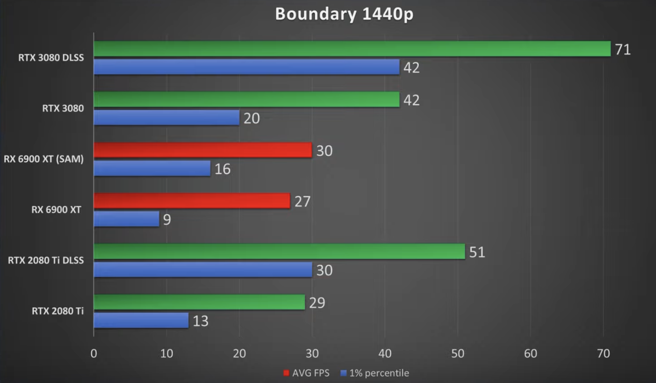 Joa, 1fps, OC. Nun warten wir halt auf erste Benchmarks mit aktiviertem rBAR und ner 3090. Ohne SAM sieht es bei der 6900XT ja auch deutlich schlechter aus (auf dem Bild ganz unten)