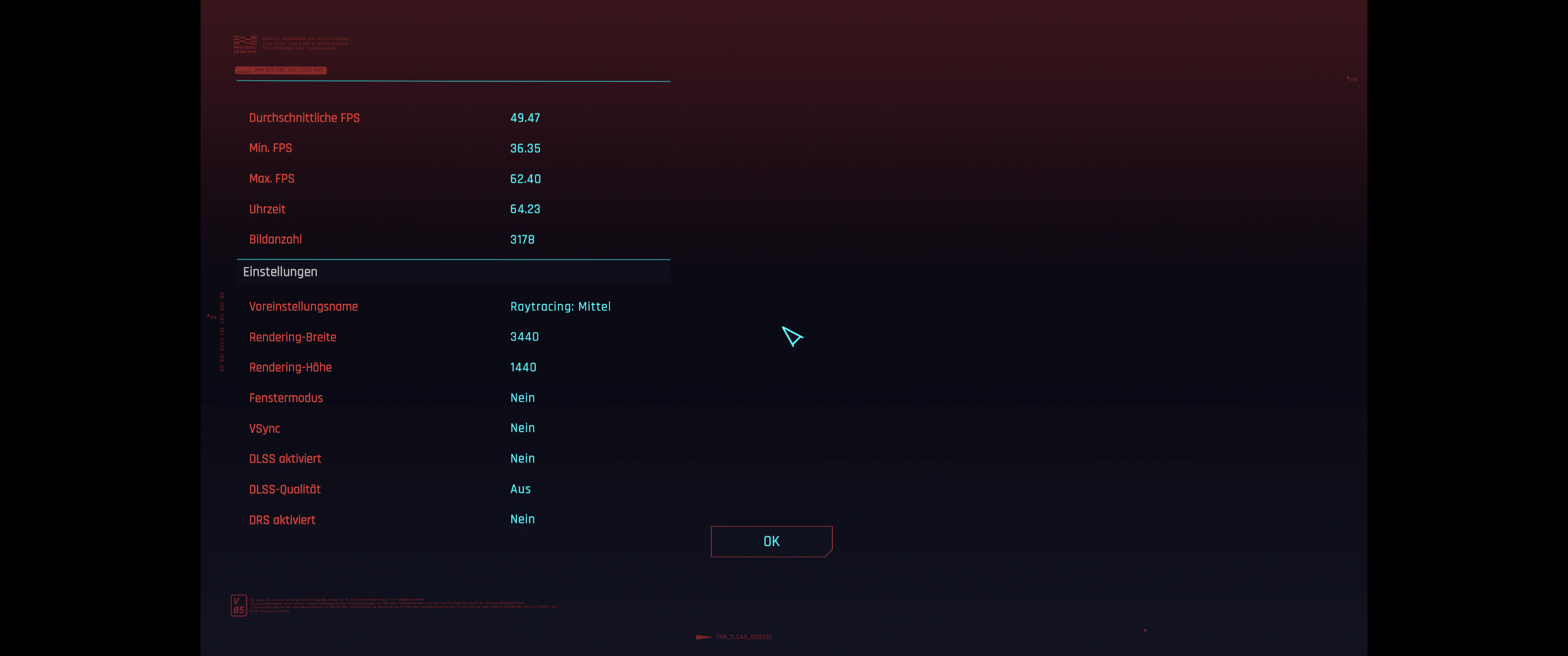 Hab auch die 6700xt + nen UWQHD Monitor, allerdings den 2700x als CPU + ddr4-3200cl14. Ich sehe grad, dass du 58,2 FPS hast auf hoch, ich gerade mal 49,8. 10FPS Unterschied durch ne bessere CPU, obwohl Cyberpunk ja eher Grafik lastig ist.RaiNSeN schrieb:System: RX6700XT OC, 5900X OC, DDR4-3800CL15