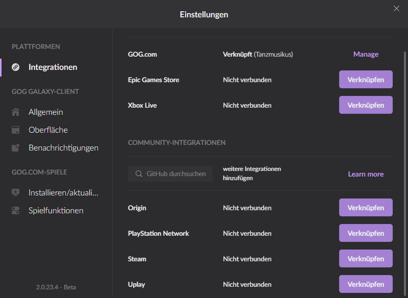 Tanzmusikus schrieb:Mit GOG Galaxy könnte man die Spiele fast aller Plattformen aus einem Programm aus starten.