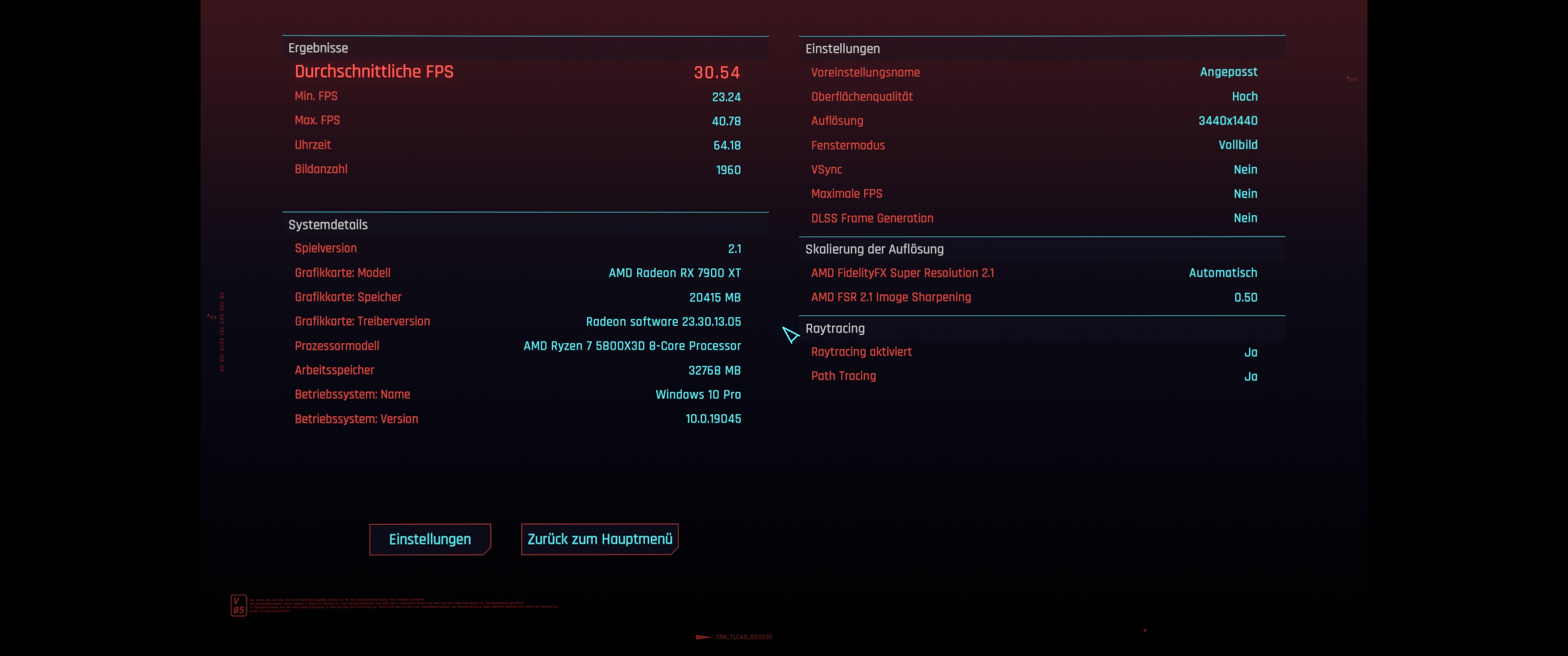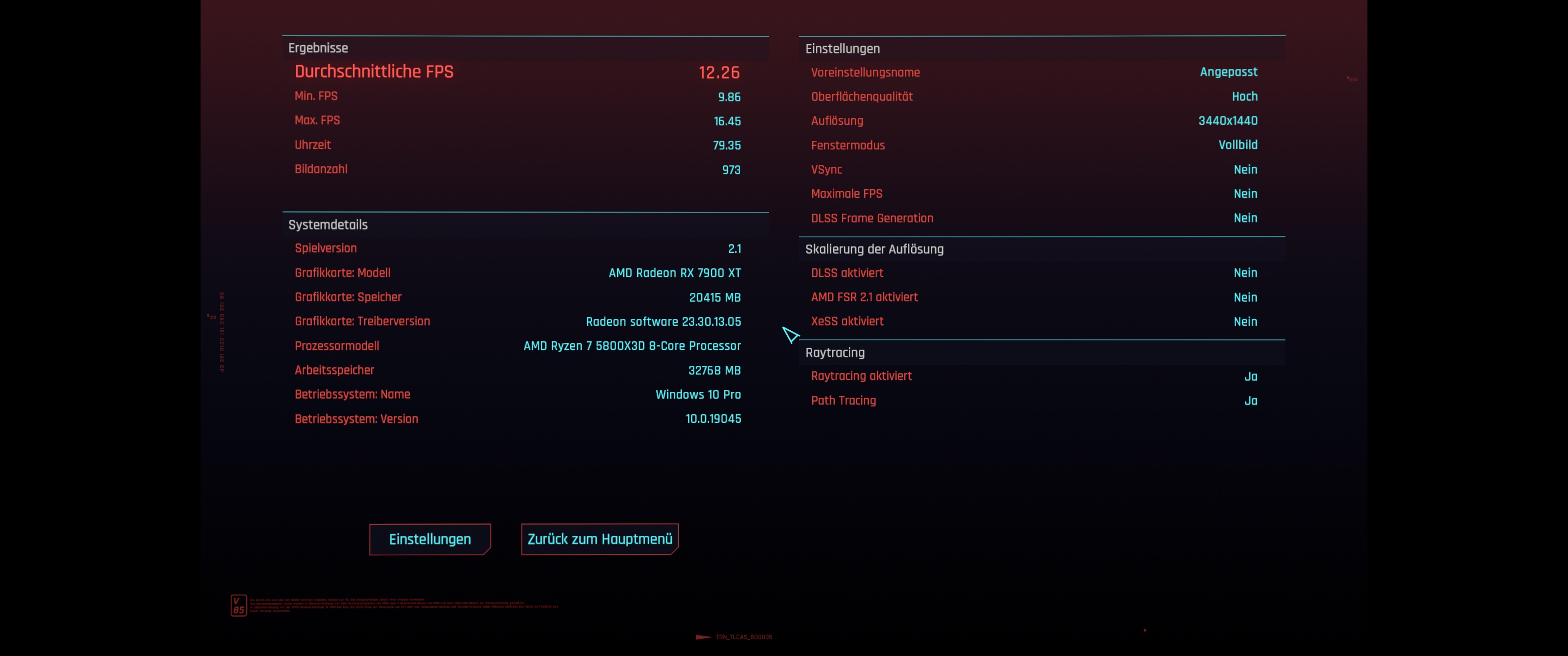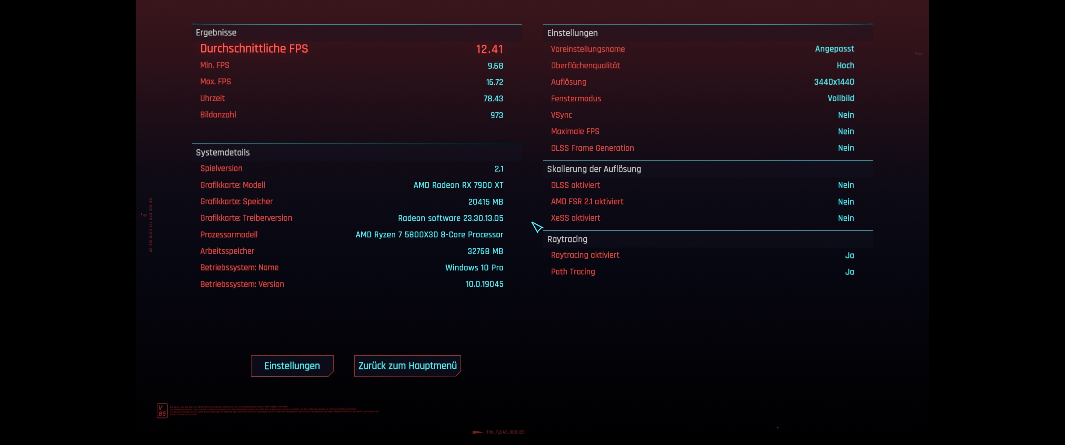 Mit welcher Auflösung spielst du? Vielleicht könntest du alles auf ultra stellen und 3440x1440 mit Pathtraceing und dann den Benchmark mal laufen lassen. Würde mich interessieren wie viele FPS du bekommst.