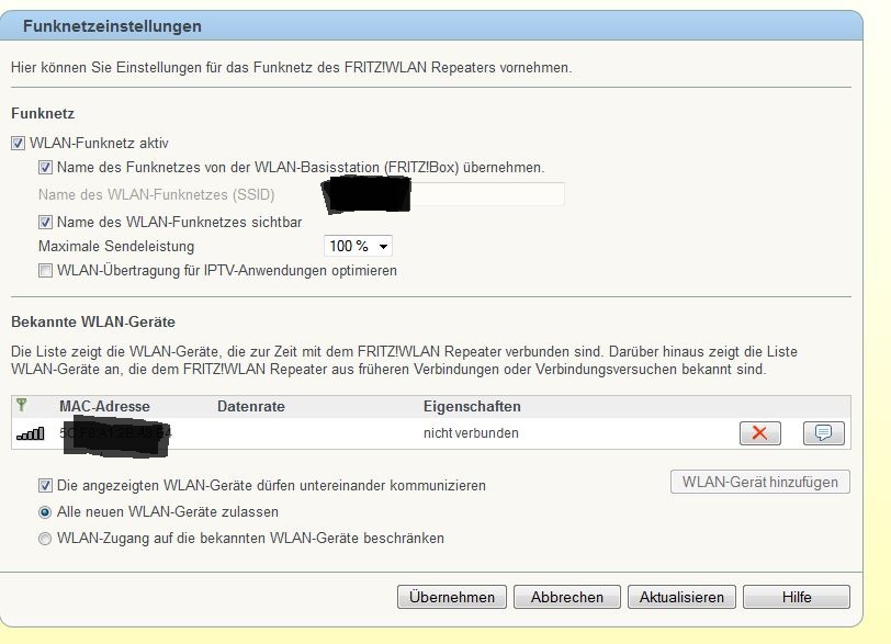 Allerdings kann ich nicht die Konfigurationsseite fritz.repeater aufrufen um noch (womöglich notwendige) Einstellungen zu machen. Mein Tablet z.B. habe ich mit dem Standart Schlüssel mit dem Repeater verbunden.