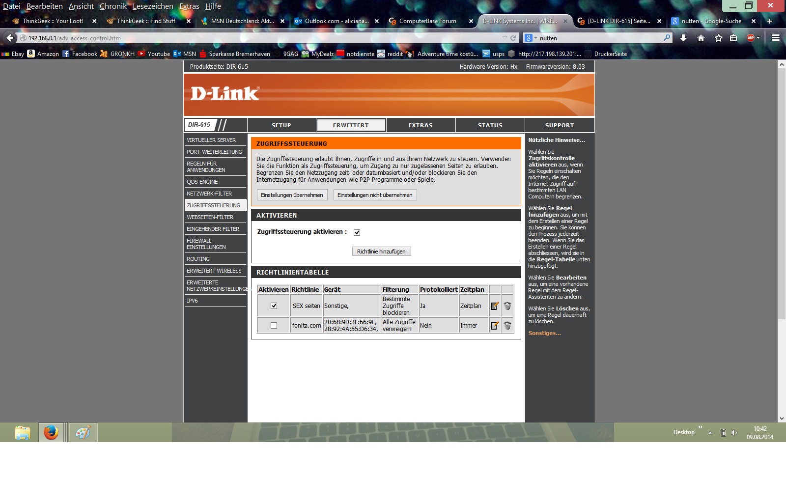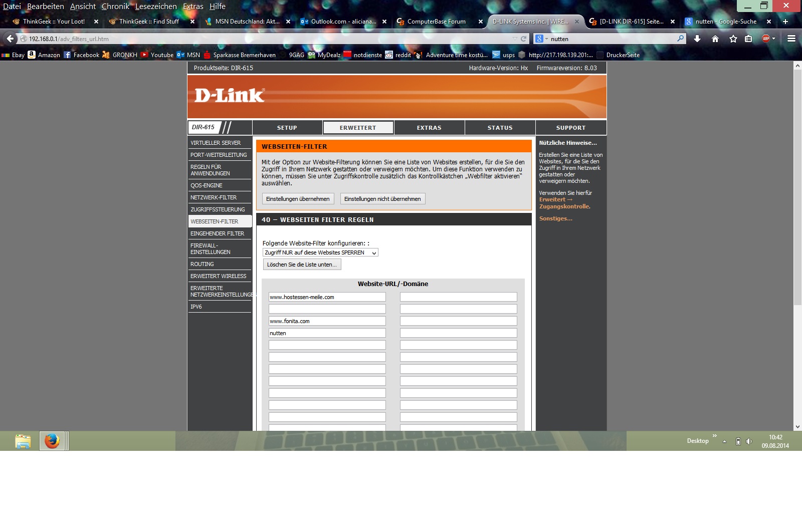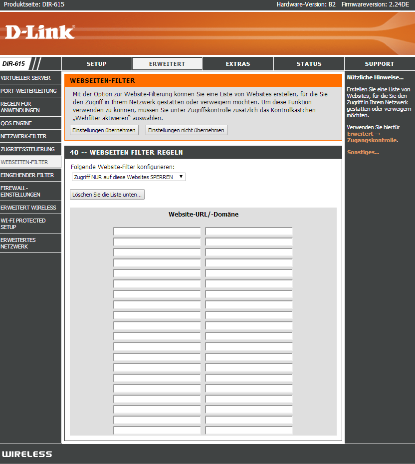 Ich möchte gerne bestimmte Seiten mit meinem Router sperren lassen, jedoch wenn ich auf Erweitert -> Webseiten-Filter gehe und dort die entsprechenden URLs eingebe und abspeichere kann ich immernoch darauf zugreifen. Hab auch schon auf https geachtet. Auch habe ich mich schon durch unzähligen Foren durchgelesen und keine Antwort finden können.