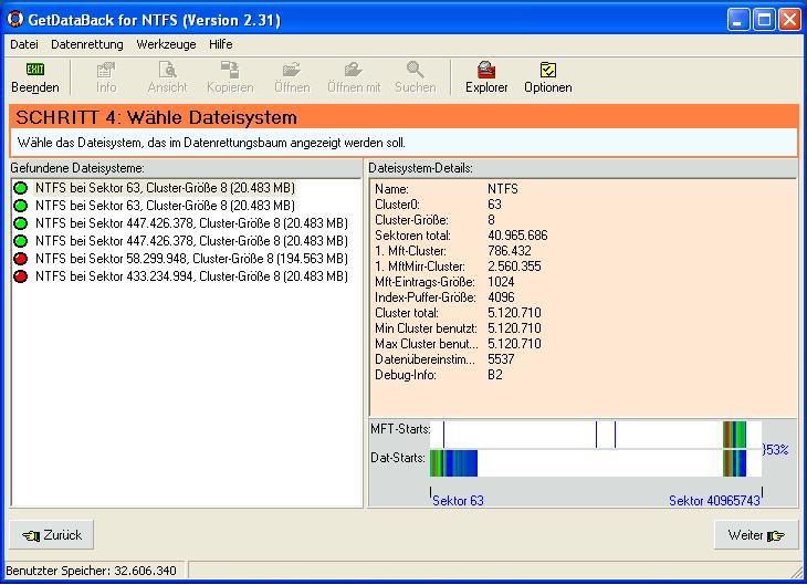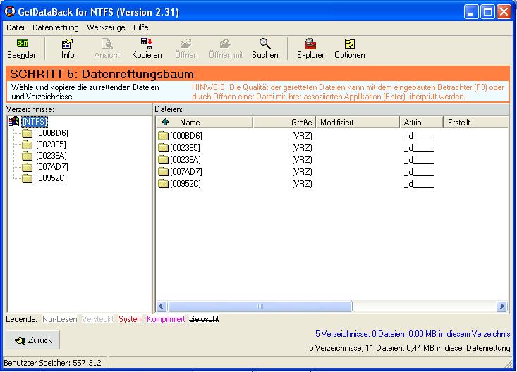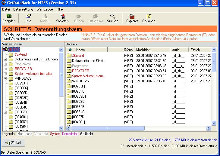 Habe die programme testdisc und pc inspector file recovery benutzt aber irgendwie bekomme ich das nicht hin, bin wohl zu blöd, wie gesagt ich muss nicht alles wiederbekommen, am schönsten wäre halt wenn ich ne schöne ordnerübersicht von der d platte hätte von der ich alles auf ne andere platte kopieren könnte….