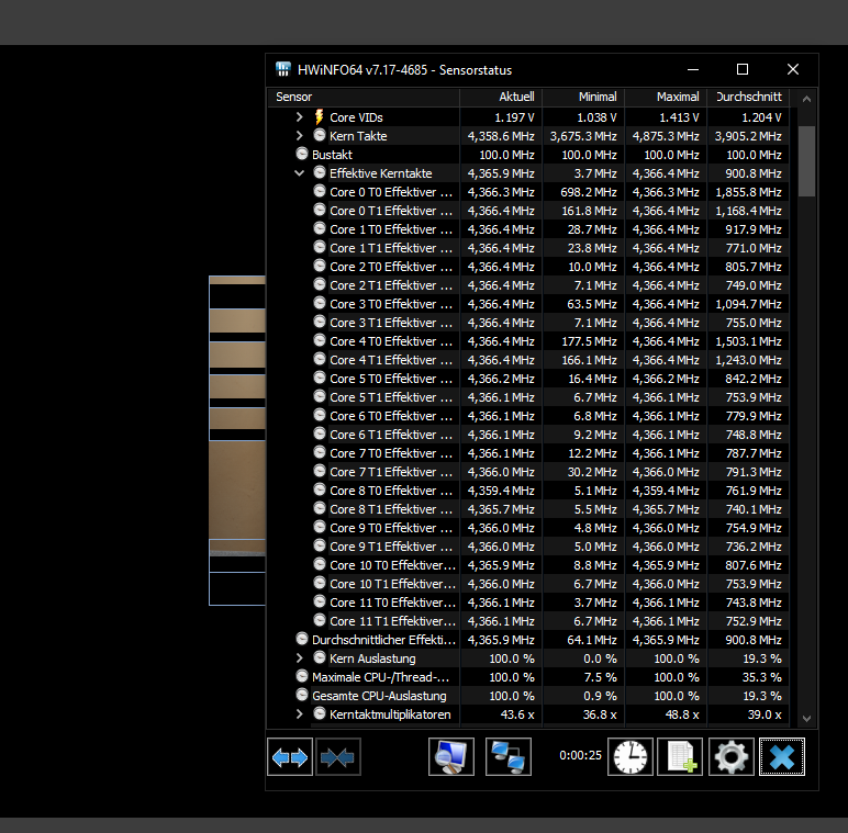 Ich weiß nicht wem du etwas beweisen willst ... oder ob du dich noch weiter reinreiten willst, aber ich habe mittlerweile wieder die STOCK Settings des Mainboards geladen. 4,36 GHz Allcore ... im STOCK-Betrieb ...
