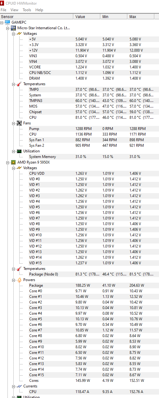 Zeig mal einen Screenshot von HW Info Temps der CCD´s und der maximalen Lüfterdrehzahl ohne das du die CPU großartig belastet hast.Zocker311 schrieb:HW monitor dümpelt bei 450rpm rum