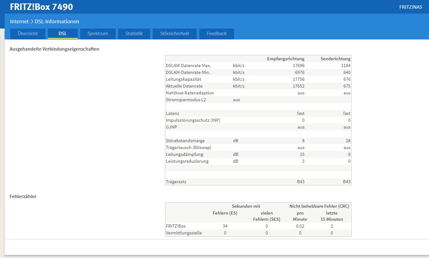 ich bin aktuell bei meinen Eltern und habe mich gestern gewundet, dass auf einmal Highpings vorhanden waren. Also die FB 7490 geprüft und es waren 2000crc Fehler vorhanden. Also erstmal von max. Performance die Regler mehr Richtung Stabilität geschoben (hatte alle Regler mittig). Doch dann der Schock: Mit den Reglern in der Mitte kam kein Synch zustande, also so lange rumprobiert bis ein Sync wieder da war (der unterste Regler für Dämpfung in Senderichtung steht auf 2 höchster Stufe).