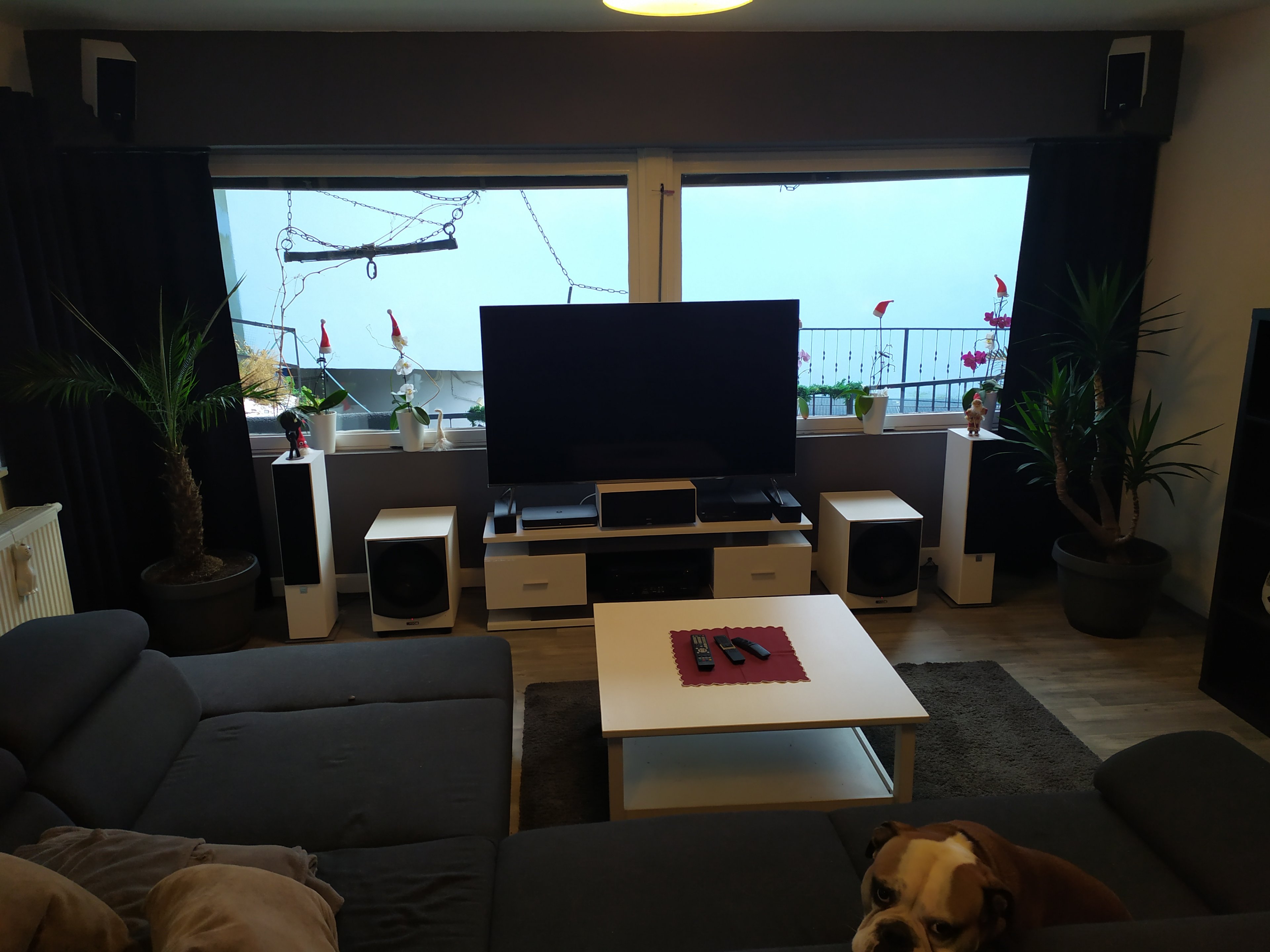 Sind das Dalis aus der Spektor-Reihe? Den Sub kann ich nicht zuordnen...scheint aber zumindest kein Leichtgewicht zu sein. Hast du noch Rear-Lautsprecher hinter dem Sofa?