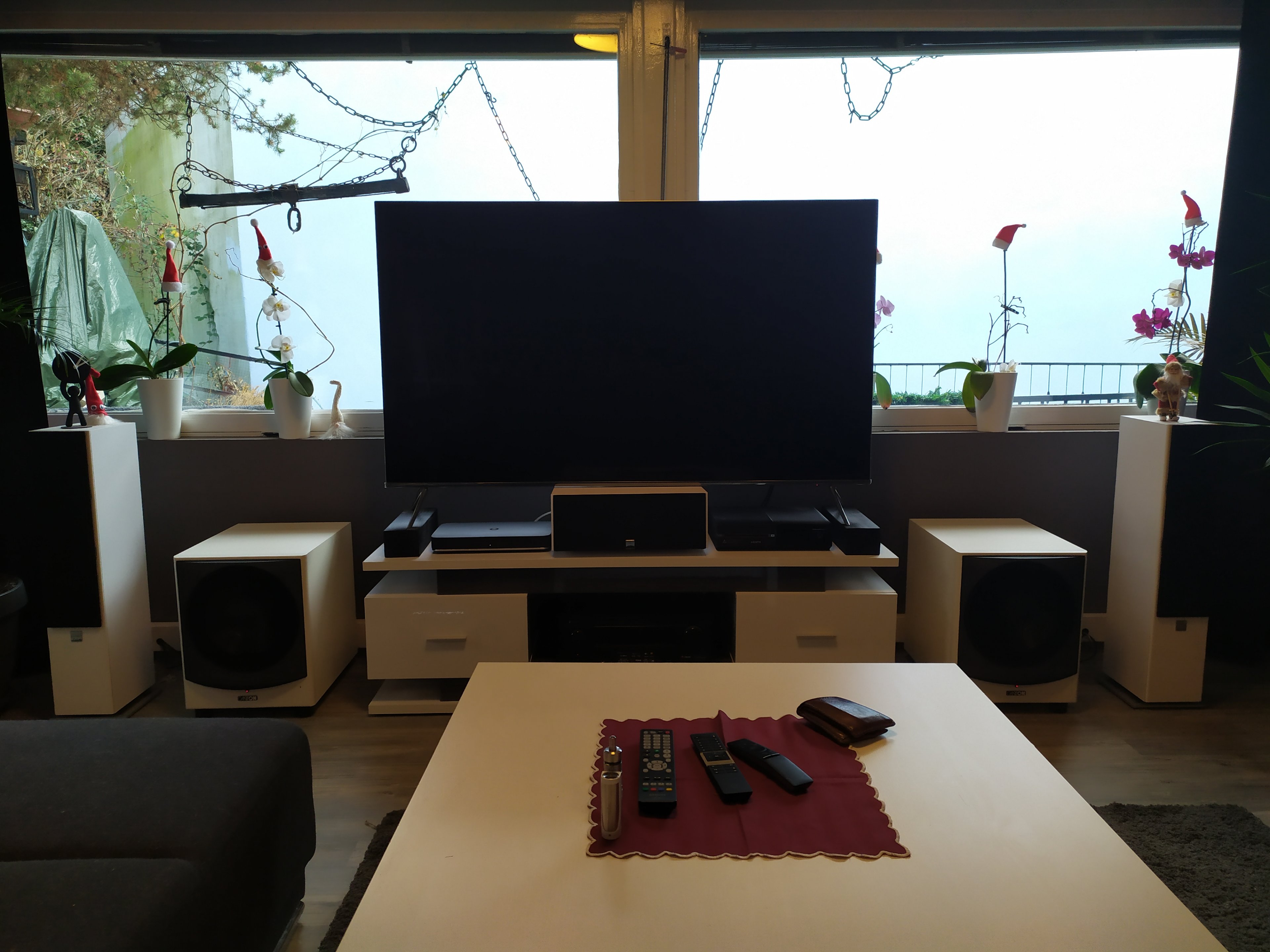 Das Lowboard wo der AVR drin steht finde ich auch suboptimal weil der Verstärker zu wenig Platz hat zu atmen hat.