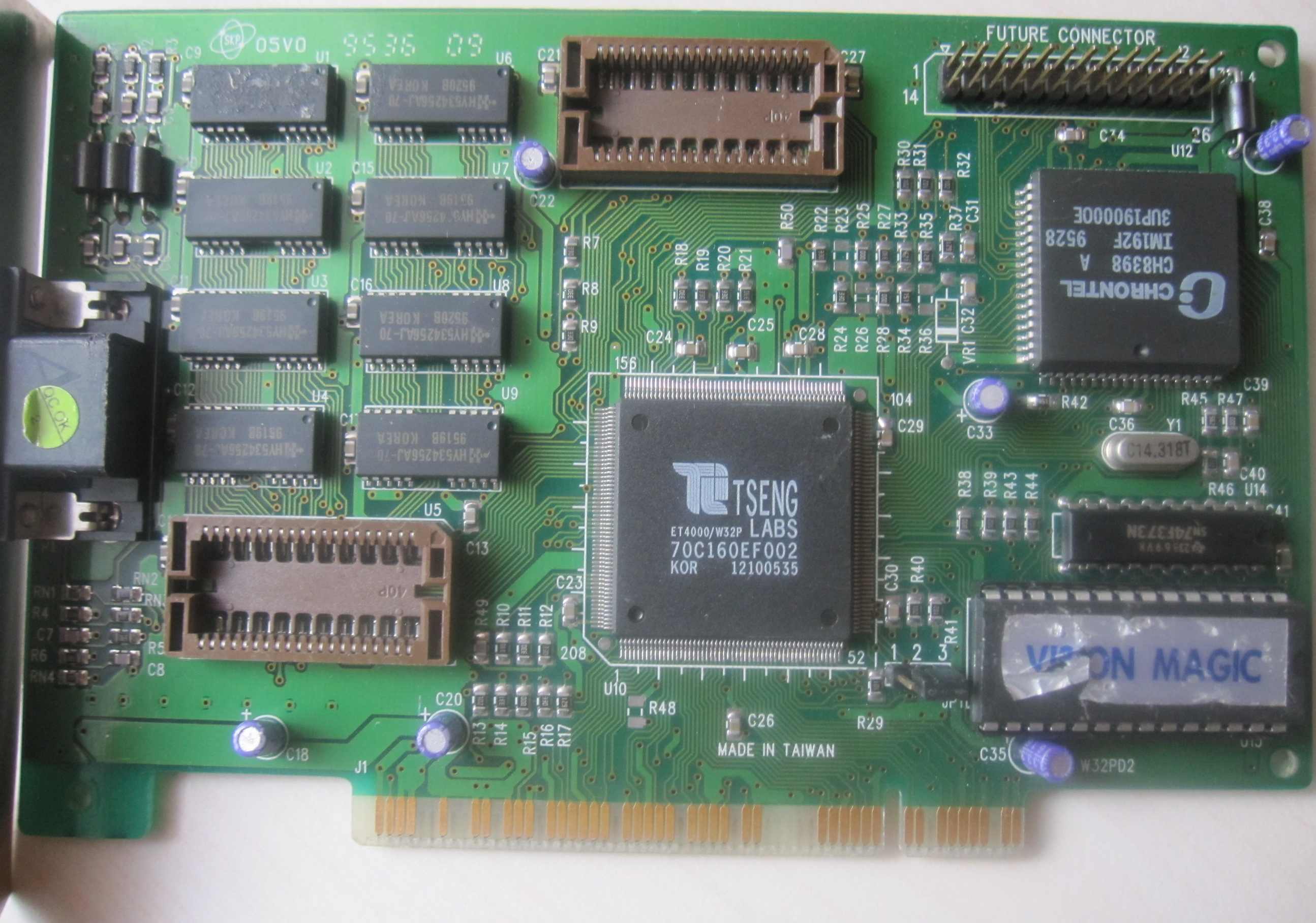 Auf dem "Chip" steht Tseng ET4000AX und sie scheint nen XGA Ausgang zu haben.