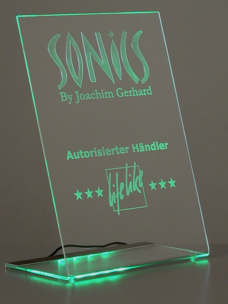 Man könnte einen kleinen Schriftzug in das Glas gravieren. Das kommt sicher gut mit Beleuchtung und im dunklem Zimmer