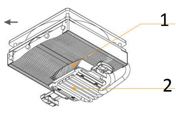 der ist ohne Lüfter 50mm hoch. das gewicht klingt mit 475g gut. um darunter einen lüfter zu quetschen muss man aber den "sockelkühler" entfernen (im bild mit 1 gekennzeichnet)akuji13 schrieb:Nexus LOW-7000 R2