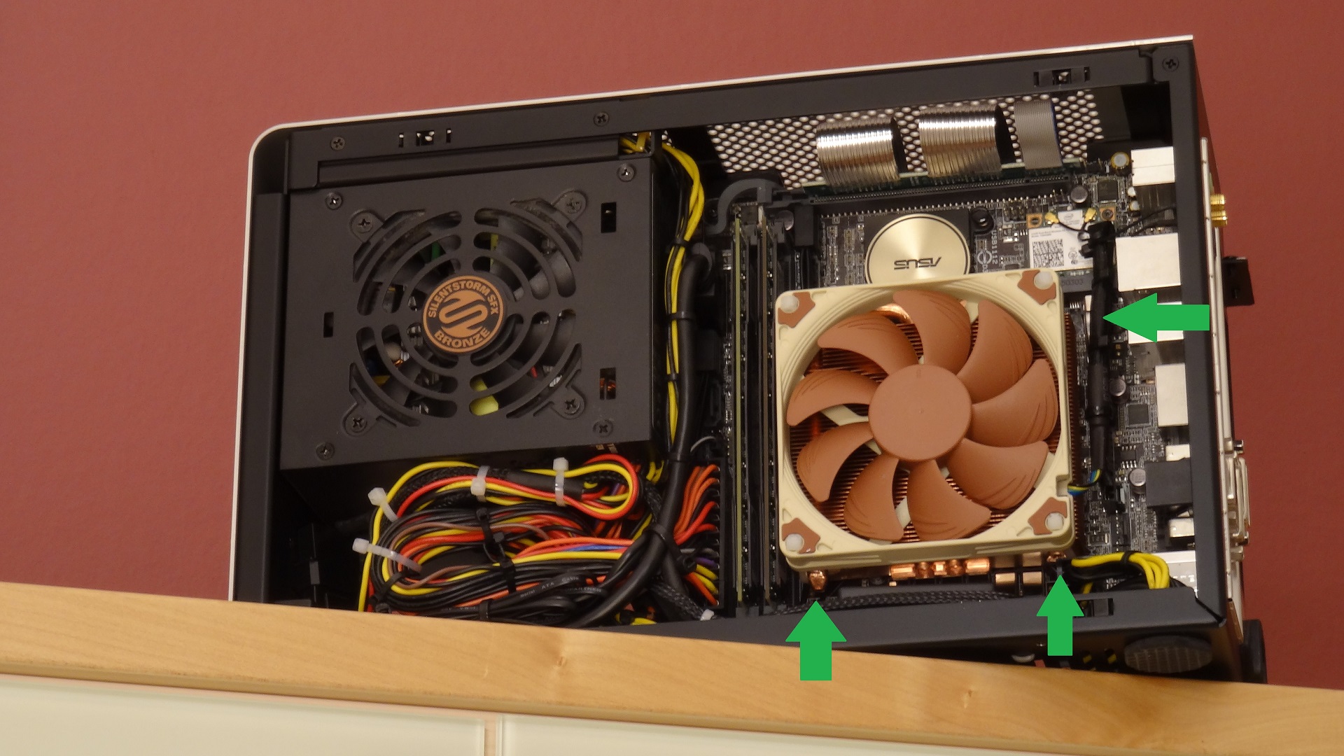 Die Drehung hatte ich versucht, bin aber schön gegen die Mobo Kühler gestoßen und wollte die nicht dauerhaft unter diesen Druck lassen.