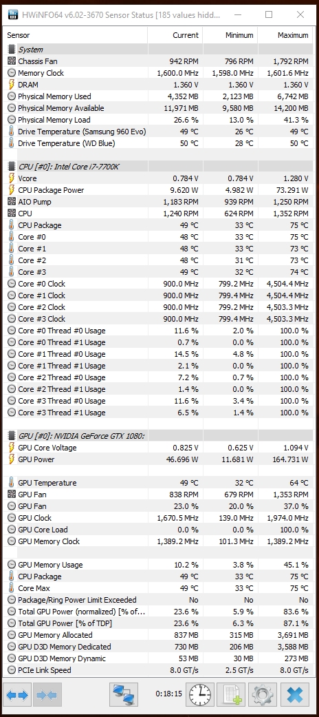In Spielen und "normalen" Anwendungen bleibt der RyZen unter 70°, bei ca 1500 RpM's und die Rx480 bei ca 70°, bei ca 35% Fan speed.
