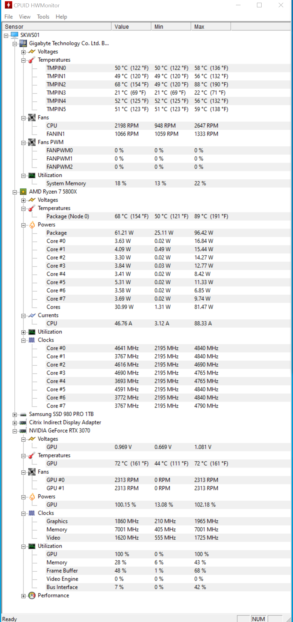 @Guenni584 ok liest sich eh recht gut. Bei 100 % GPU Load wie schauts da aus ? Max RPM während dem 3dMark z.b ?