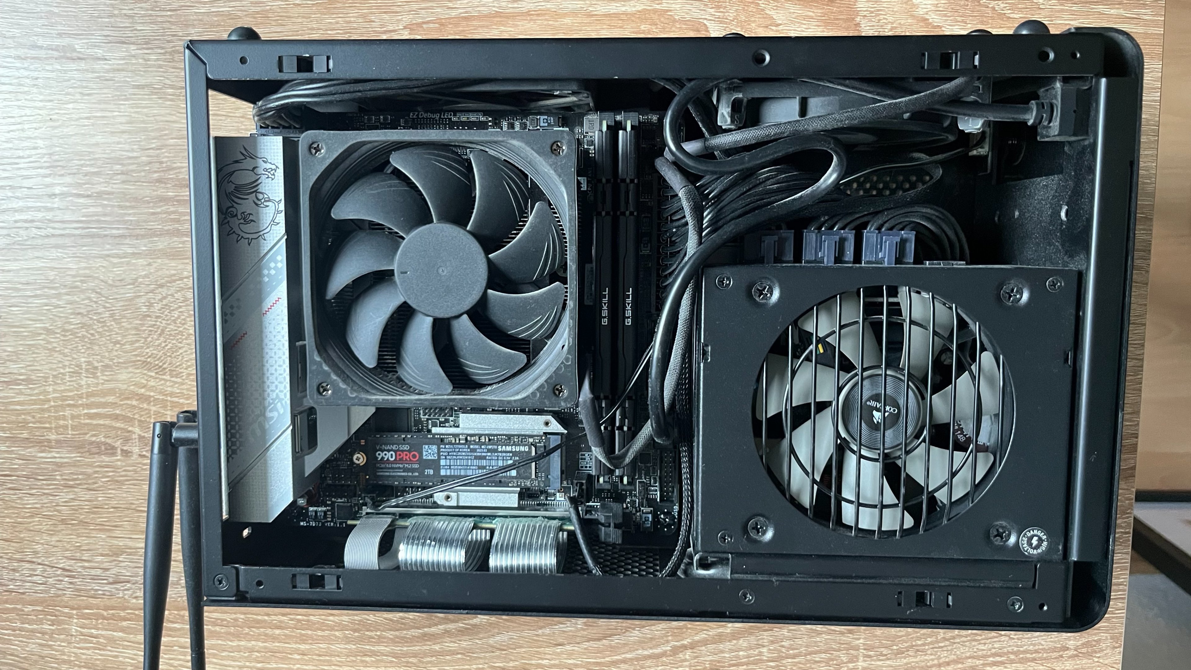 Auch mit dem Strom-Adapter läuft es. 80h Enshrouded mit Karte an die Grenzen rangeführt ist noch nichts abgefackelt, und Platz für empfohlene Biegeradien waren im Dan A4 nicht drin.