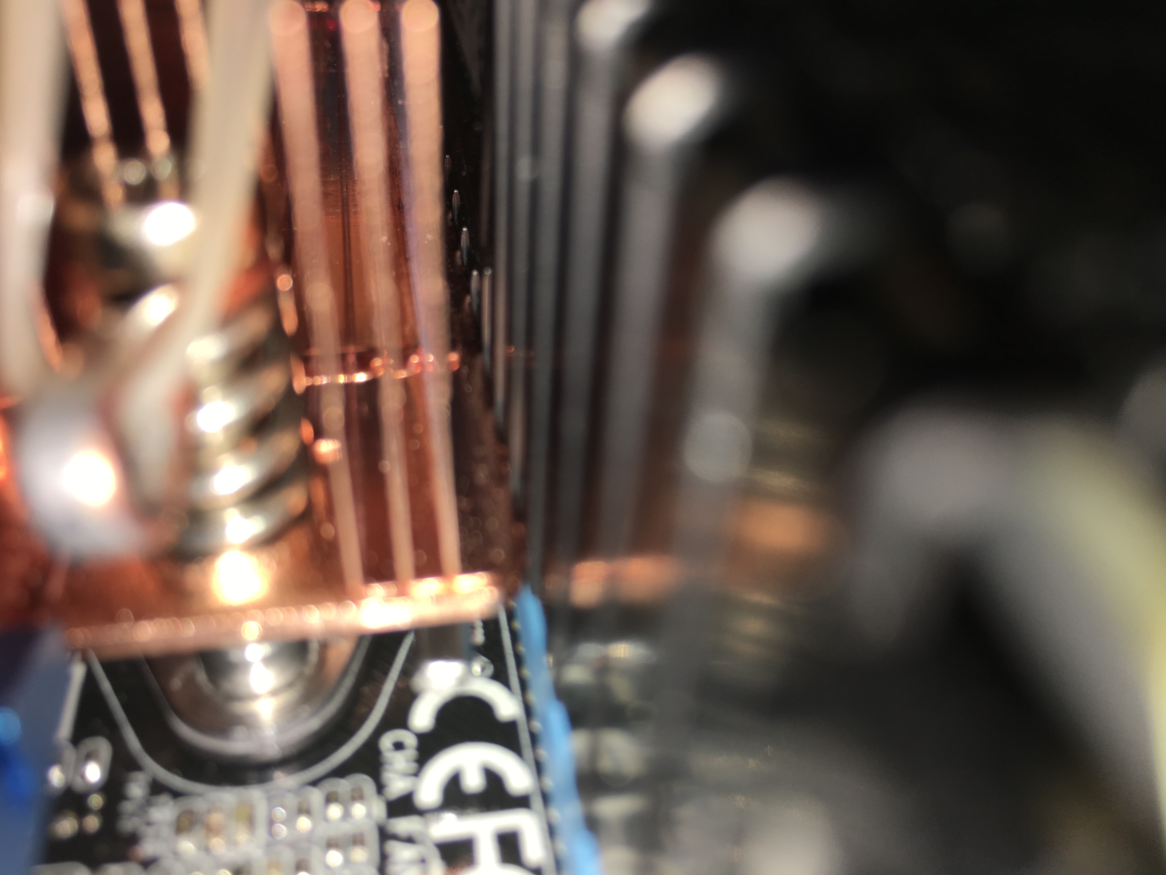 Wie man auf den Bildern hoffentlich sieht, ist zwischen RAM und Kühler wirklich absolut kein Platz, was heißen würde dass da direkter Kontakt besteht.