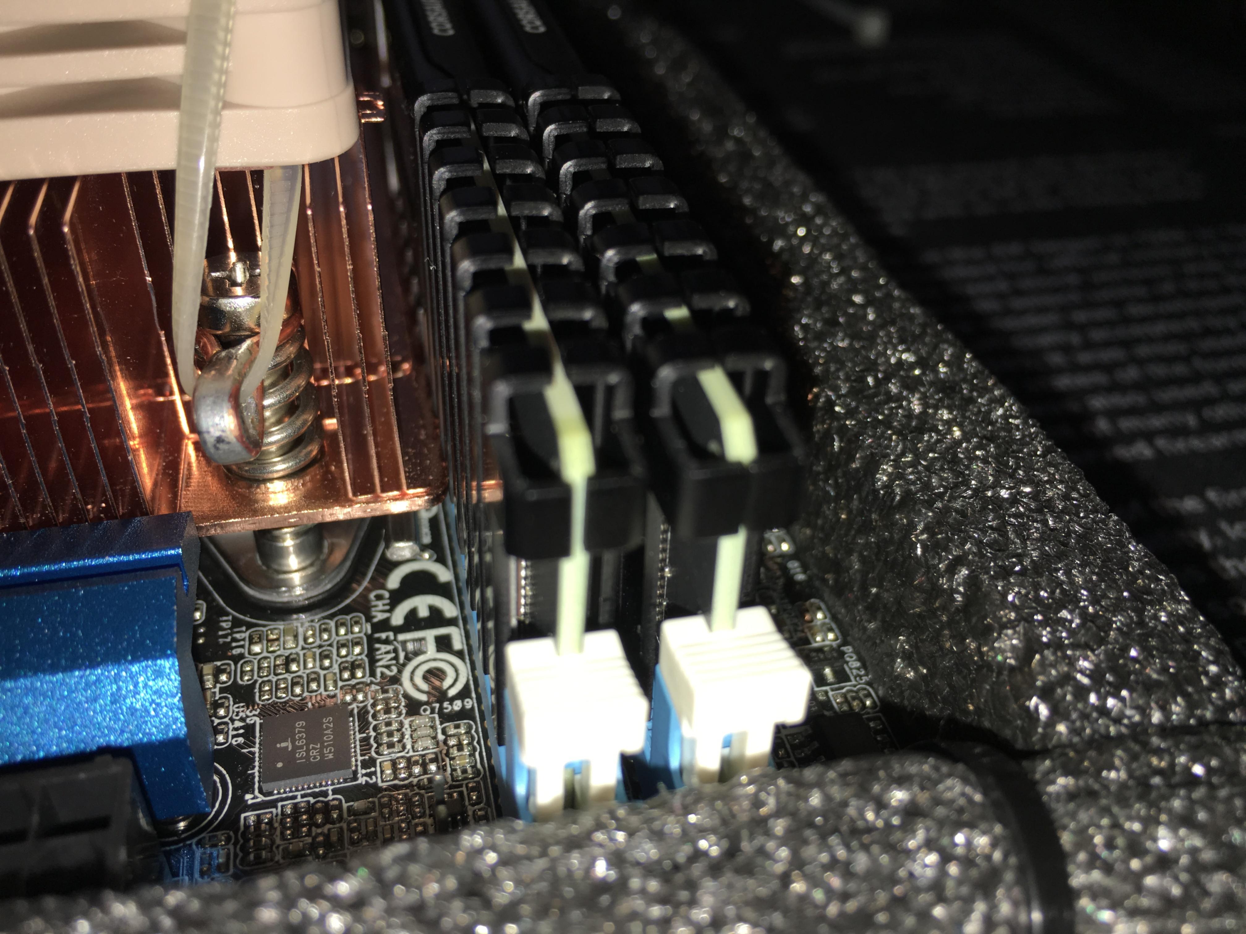 An dem 24Pin Stecker des Corsair SF 600 müsste ich übrigens auch die kleine Nase, die 20+4 Pin verbindet entfernen, da diese auf den äußeren RAM gedrückt hat, wodurch er schräg im Slot war und dadurch ab und zu nicht erkannt wurde.