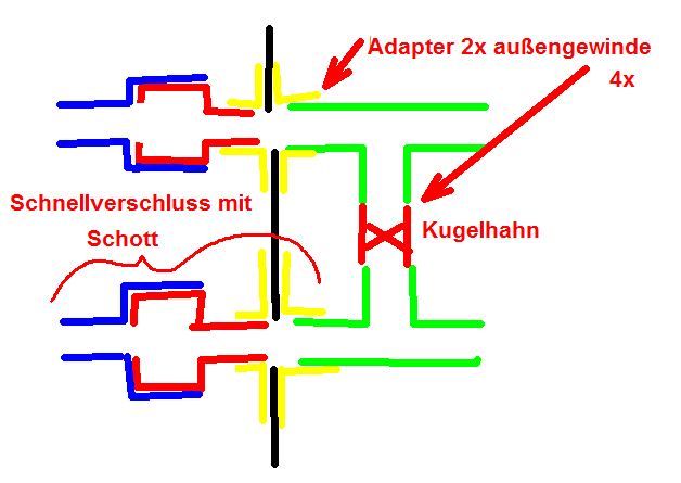 Dafür habe ich einfach Schnellverschlüsse mit Schottverschraubung genommen.