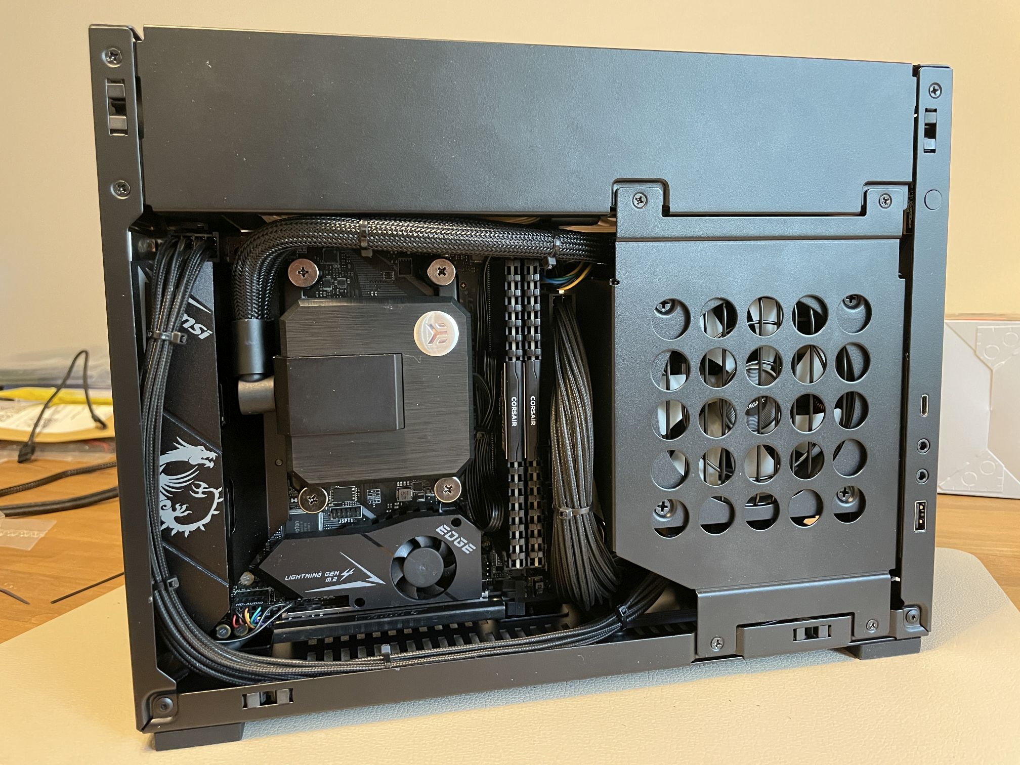 Hab ein MSI B550I und da hab ich den Power Button nicht angeschlossen bekommen wegen der Kabellänge. Musste mir dann erstmal ein neues basteln. Die EK-AiO reinquetschen ist auch so eine Sache.