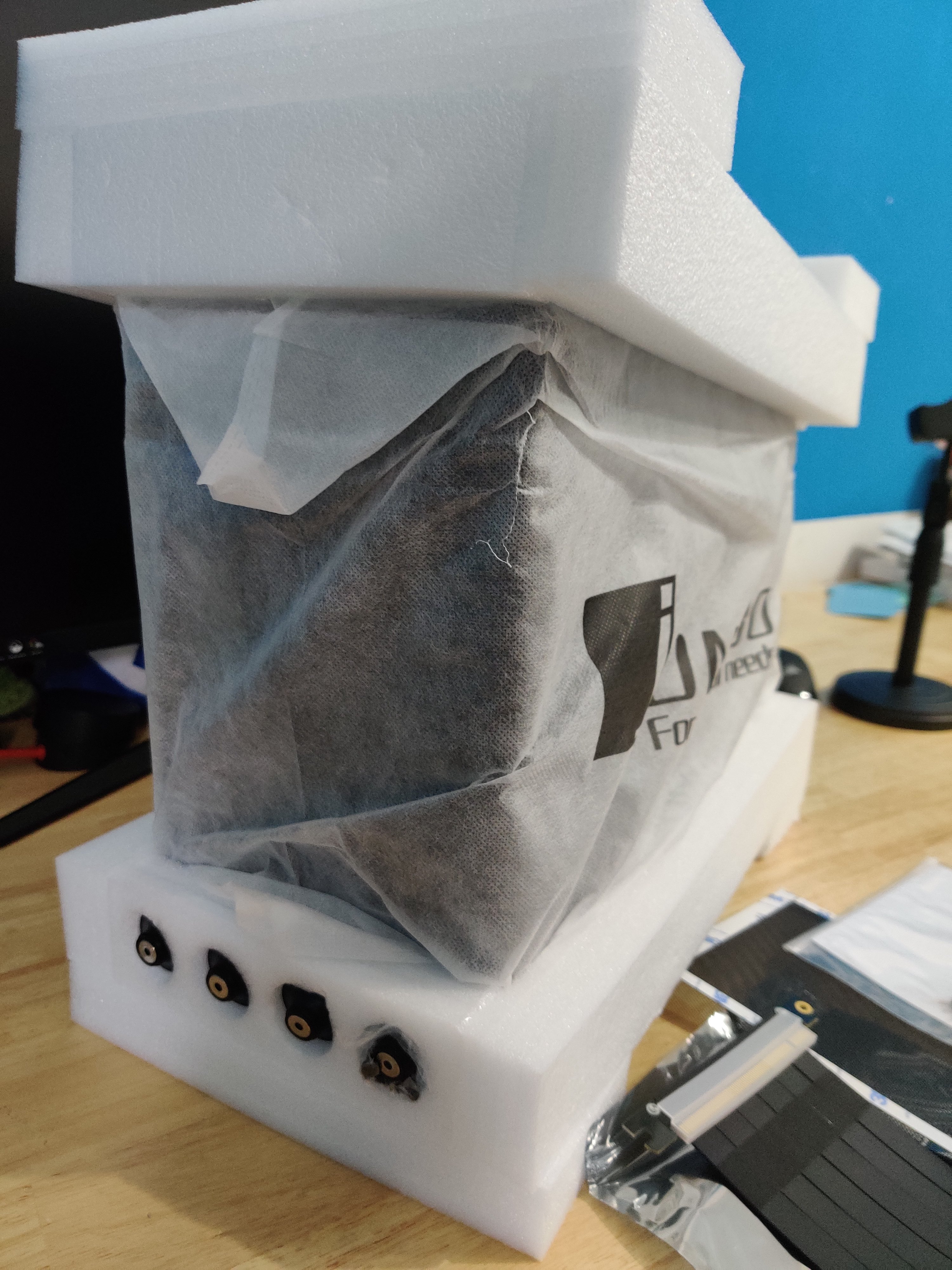 Das Gehäuse ist sehr gut verpackt und bringt auch schon was auf die Waage (lt. Internet 5,6kg). Zusätzlich ist das Gehäuse durch ein weißes Cover geschützt, welches nochmal mit dem Jonsbo Logo versehen ist.