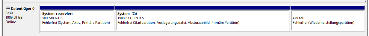 Du hast auf deinem Rechner mindestens zwei Partitionen. Wenn du Windows 10 verwendest und du Windows 10 ordnungsgemäß installiert hast, dann hast du sogar drei Partitionen: