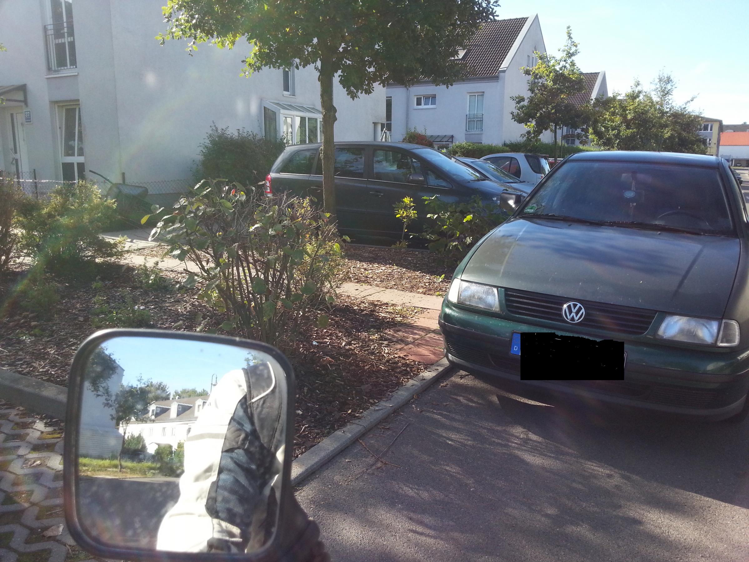 Sunnyvale hats doch eindeutig gefunden! Man sieht doch sogar die Absenkung der Randsteine beim "Blumenbeet". Mach ihn halt höflich darauf aufmerksam. Danach kannst das ja immernoch dem Ordnungsamt mitteilen.