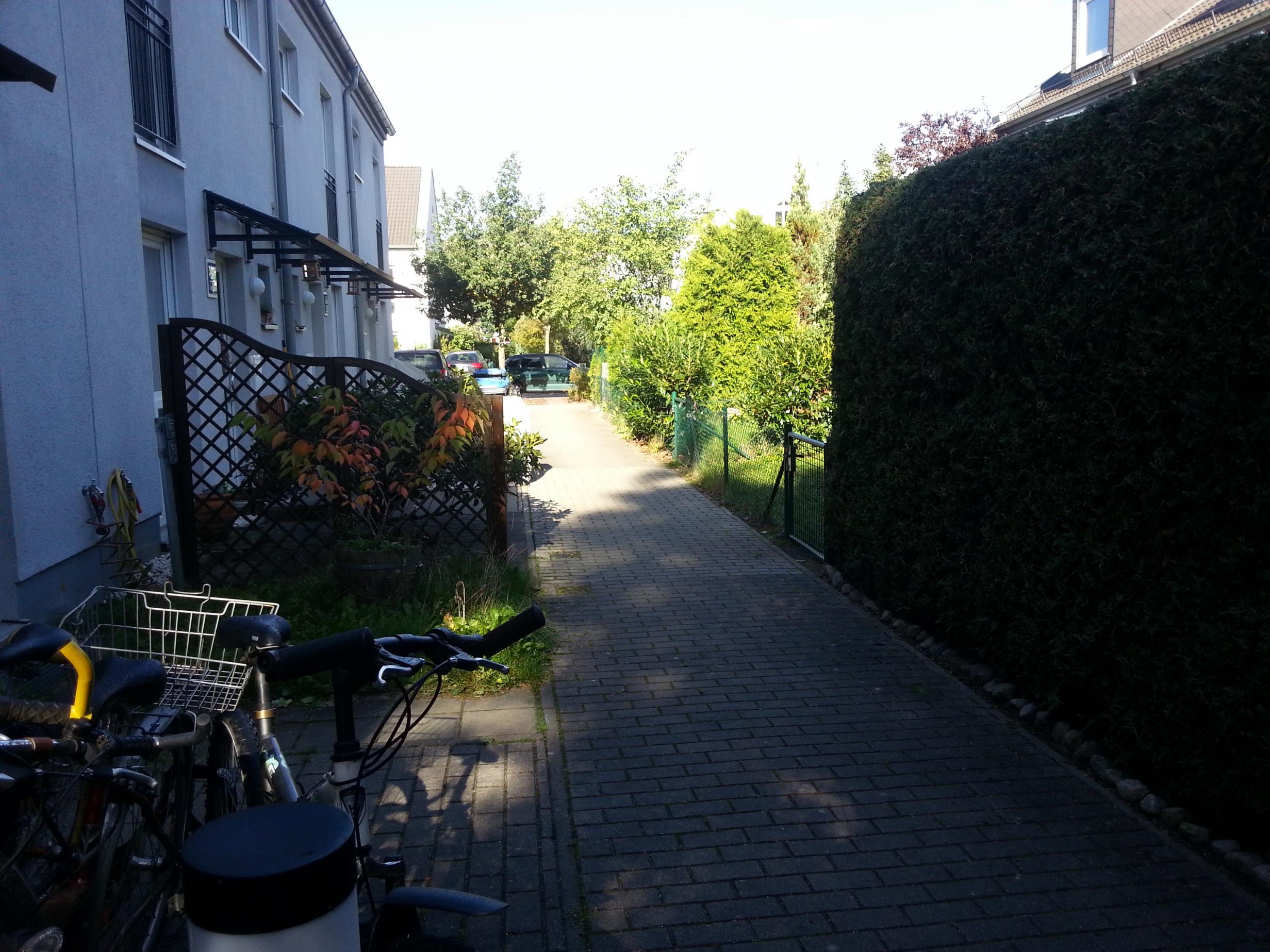 Das was ich sehe ist lediglich ein Fußweg. Ein Auto passt da wohl kaum drüber?
