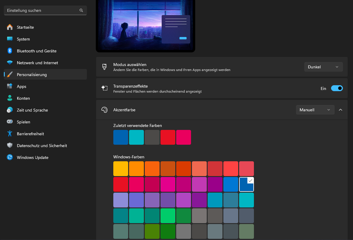 Vor ein paar Tagen habe ich Windows neu aufgesetzt und seitdem habe ich in den Oberflächenfarben zwei Optionen: