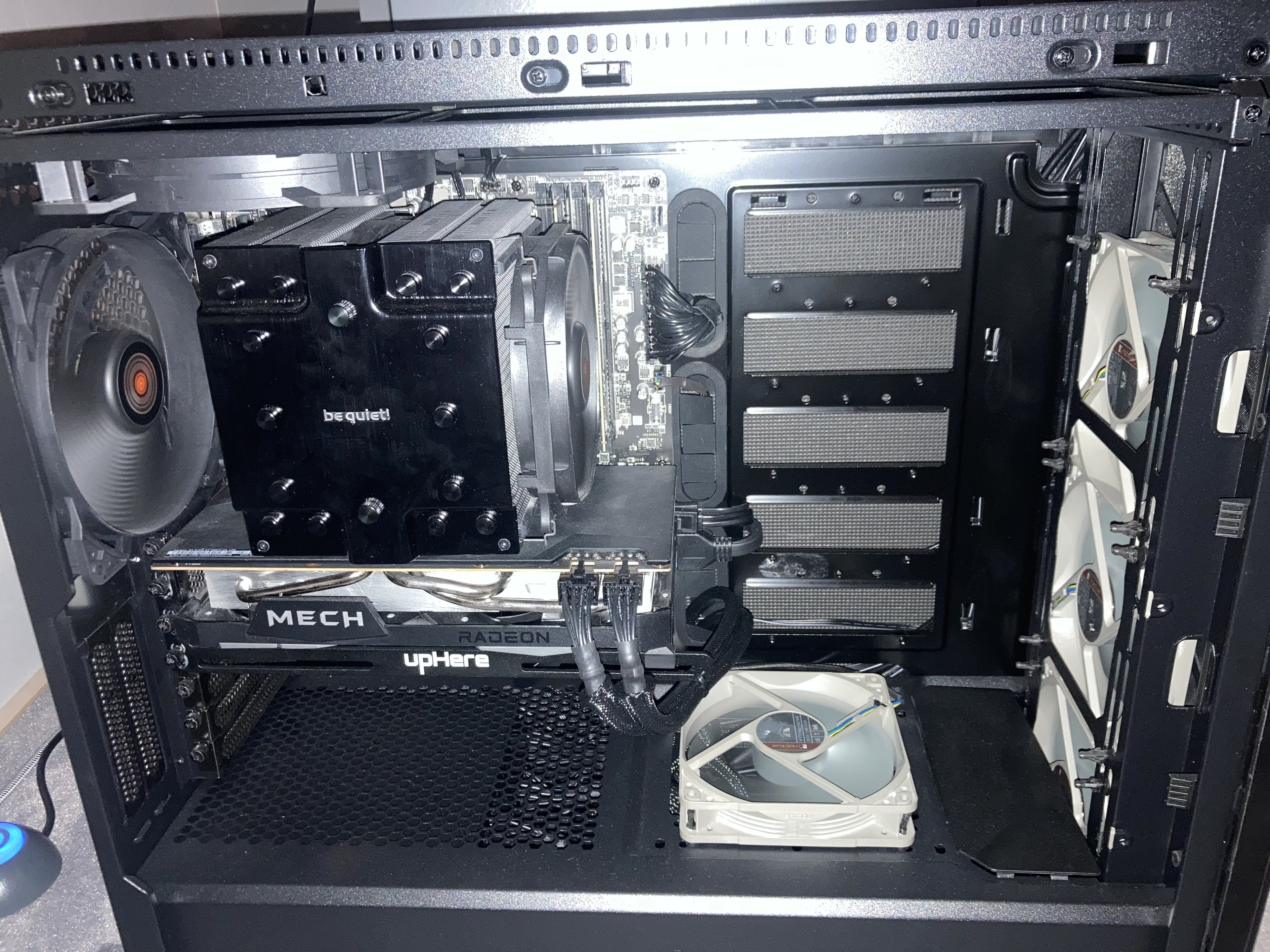 ich habe nun seit ca. 2 Monaten einen Dark Rock Pro4 im normalen Windowsbetrieb hört man ihn nicht. allerdings ab 50% Leistung(circa 650U/min) wird er hörbar. Die Lüfter stehen nicht an, sie liegen auf den Gummileisten, blasen beide in die selbe Richtung und ich verwende sogar ein Silentbase601 (gedämmtes.... falls das überhaupt was bringt) Gehäuse von Bequiet. Unter Volllast wird der Lüfter fast 44db laut. Bequit gibt maximale 25db an. Hat jemand ähnliche Erfahungen oder sogar eine Lösung?
