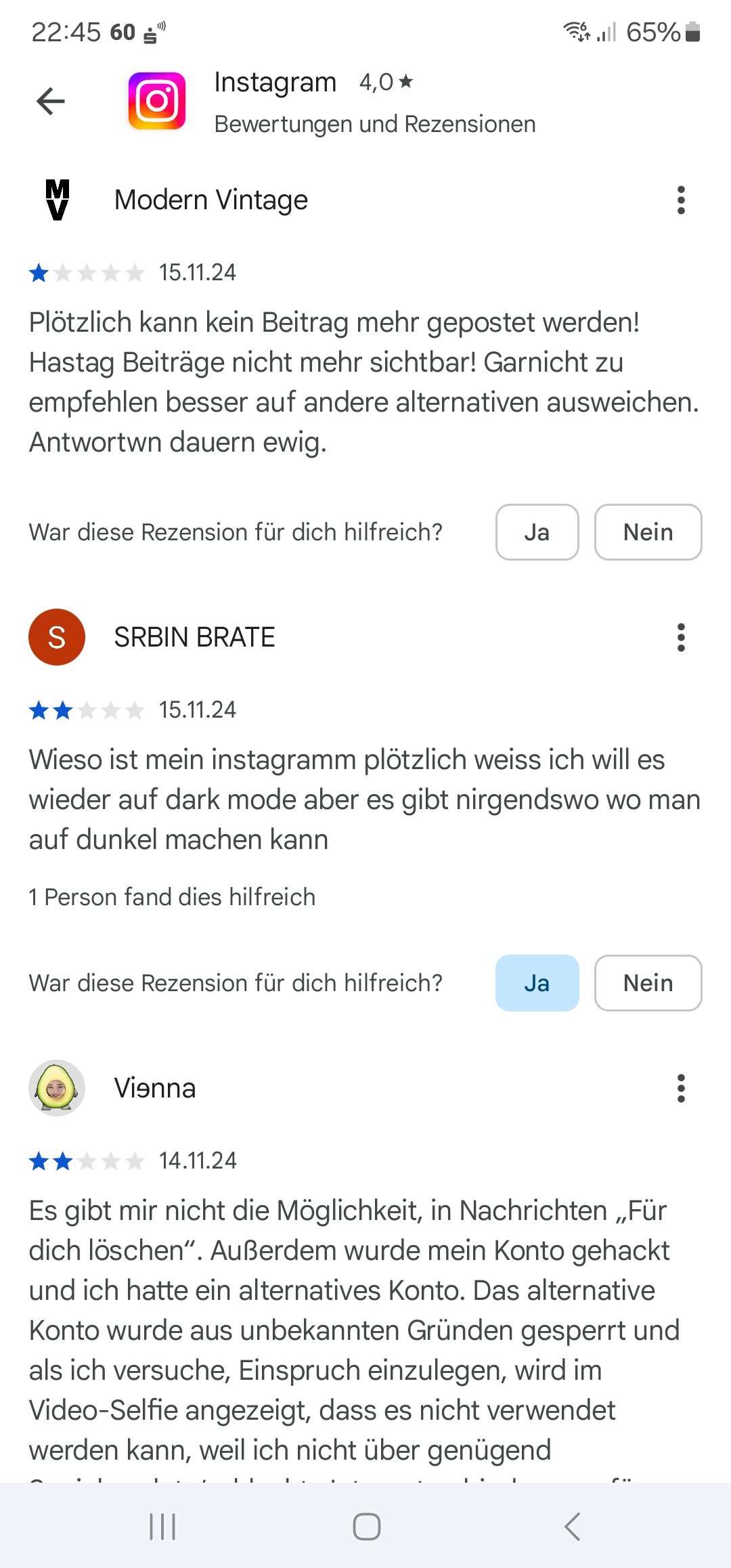 ich habe seit heute auf Instagram keinen Darkmode mehr (S22 Ultra).