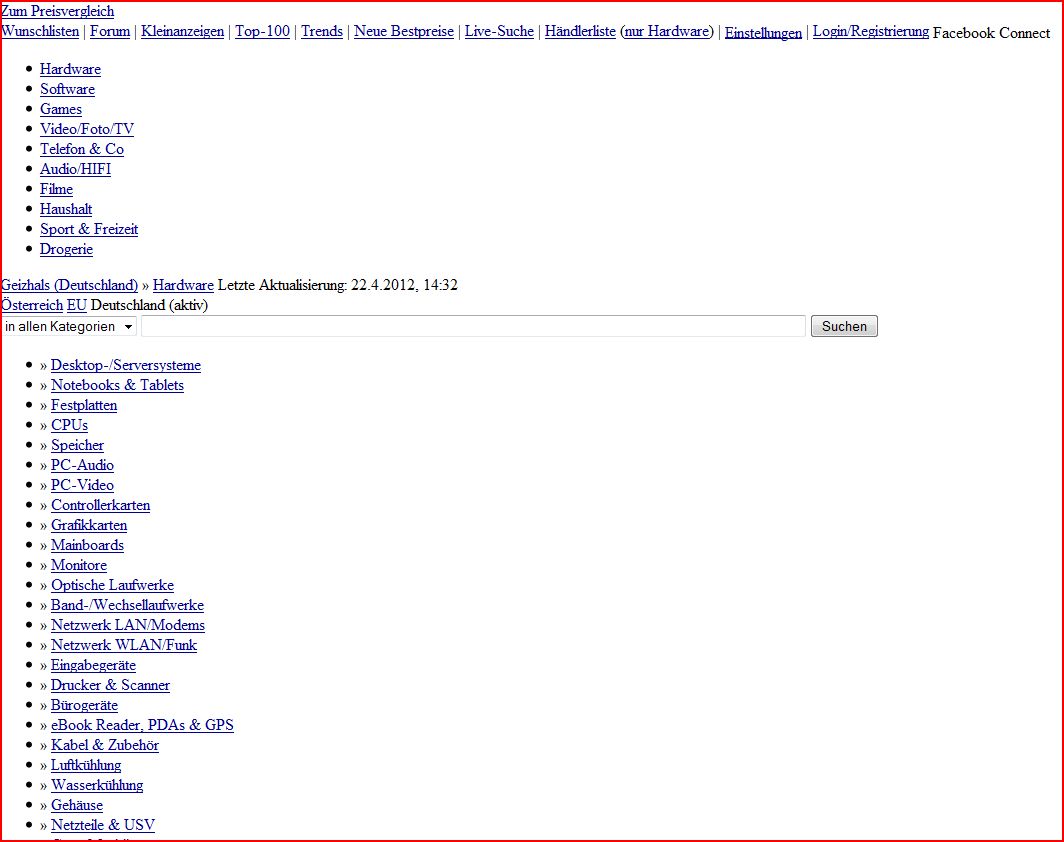 Darstellungsprobleme bei Webseiten: Heute geizhals.at