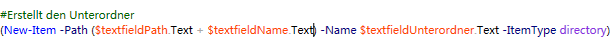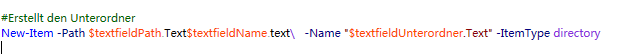 Im Grunde muss ich es ja so setzten wenn ich den Pfad angeben will. -Path $textfieldpath.text$thextfieldname.text\