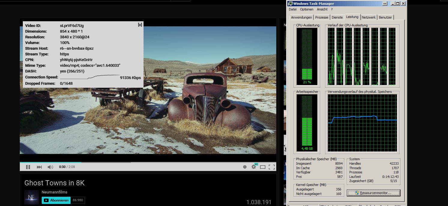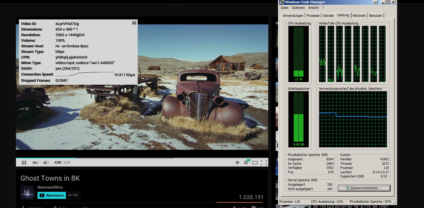 @PsychoPC hatte ich auch schon mal (bei dem einem pseudo 8K GTAV Video), ist ein Softwarefehler. Nutze einfach den Chrome 43 mit aktivierter Hardwarebeschleunigung und