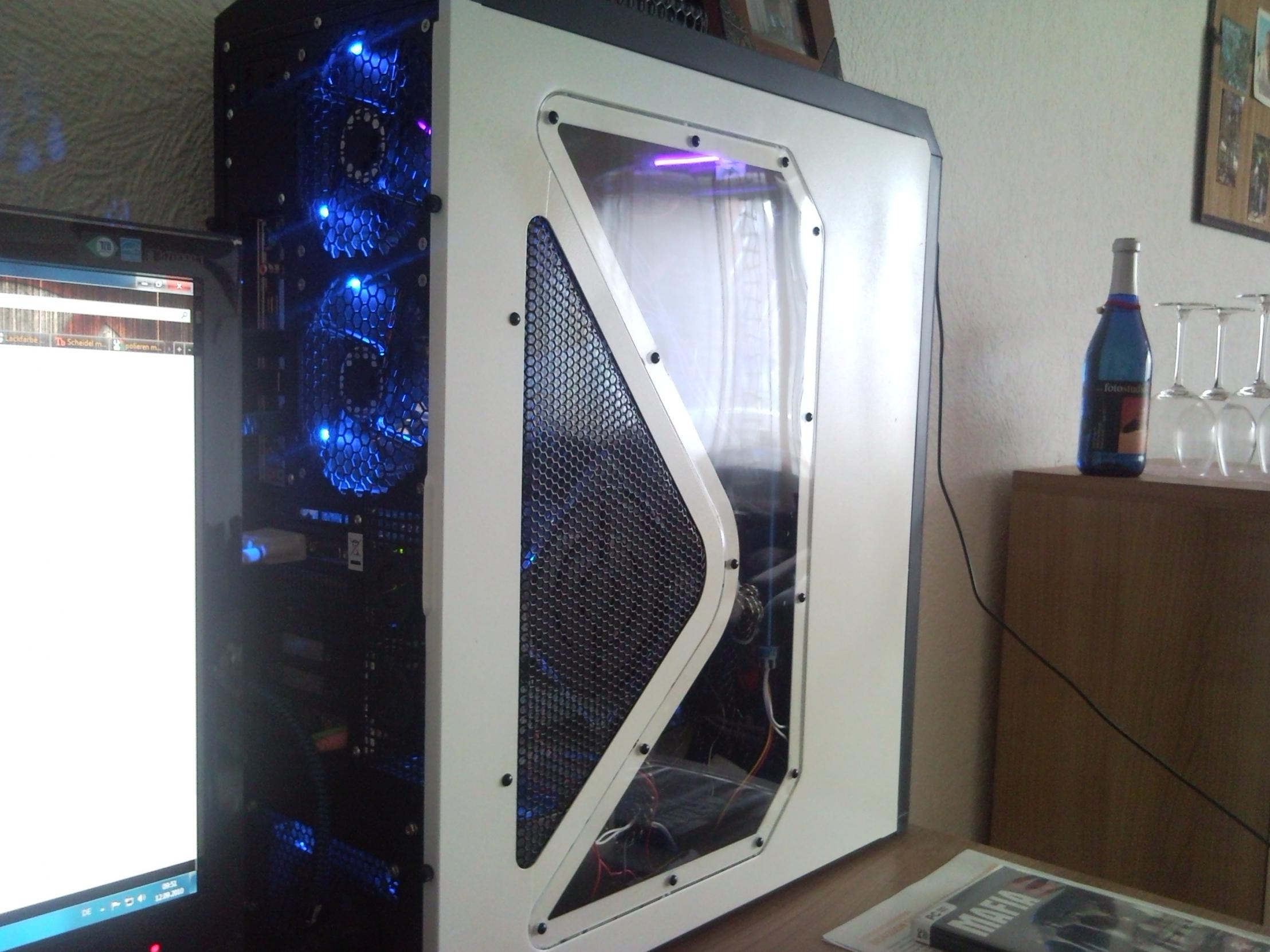 Jetzt besorg ich mir noch nen gebrauchtes NT welches dann schwarz weiss gesleeved wird und auch alle anderen Kabel die im Case rumfleigen, dann sollte es schon sehr ansehnlich werden ^^