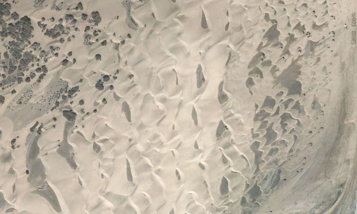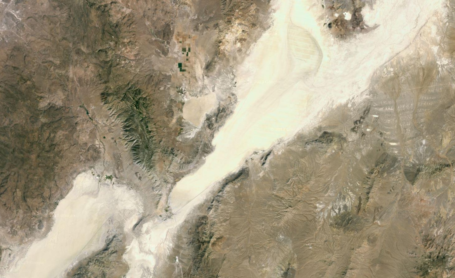 Ne Straße in einer Wüste, die von Bergen umgeben ist? Klingt irgendwie nach USA. Außerdem sieht man diese seltsame Landwirtschaft im Nord-Osten. Also in die USA gesprungen und den ersten Wüstenflecken, den ich gesehen habe, angesteuert --> Lösung.