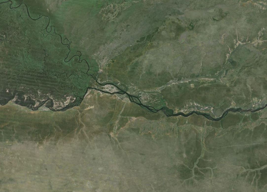 Bum, ich habs endlich. Das ist das Quasi-Vierländereck zwischen Namibia, Botswana, Simbabwe und Sambia bei Kazungula.