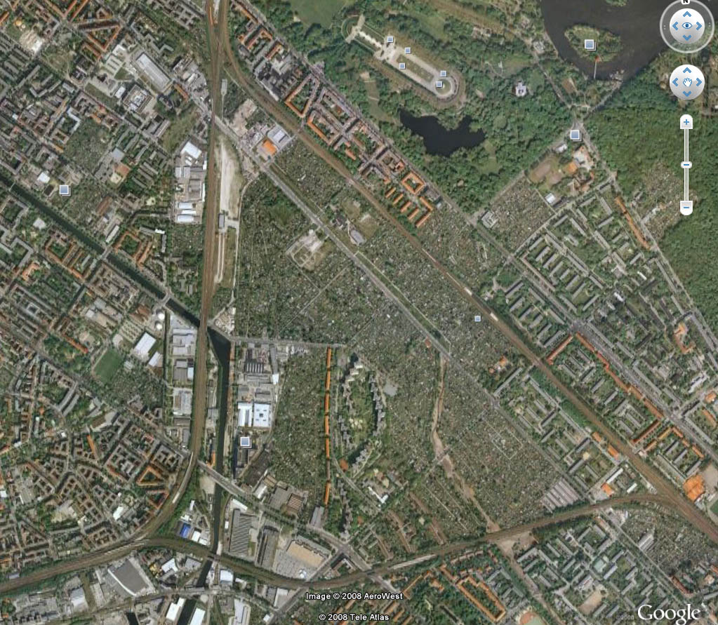 In Berlin-Treptow. Oben im Bild zu sehen ist das sowjetische Ehrenmal im Treptower Park.