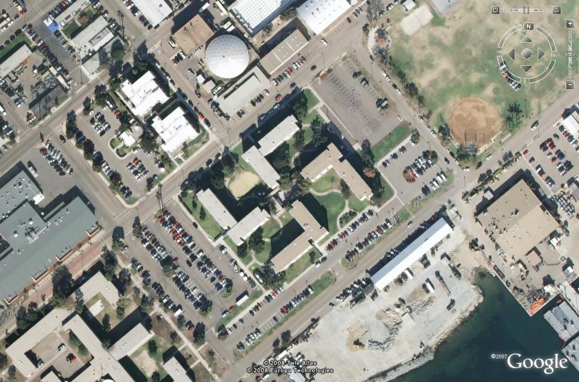 Das waren die Amerikaner, die Form des Hauses soll beim Bau nicht aufgefallen sein. Das Gebäude befindet sich in Westamerika in der Nähe von San Diego, es gehört zur Navy als Flottenstützpunkt.