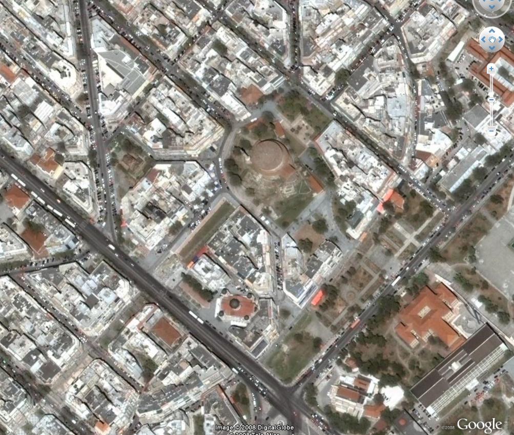 Nö. Nochmal zur Verdeutlichung: es geht um den "roten" Rundbau und um das südwestlich in Achse liegende, kleinere Monument.