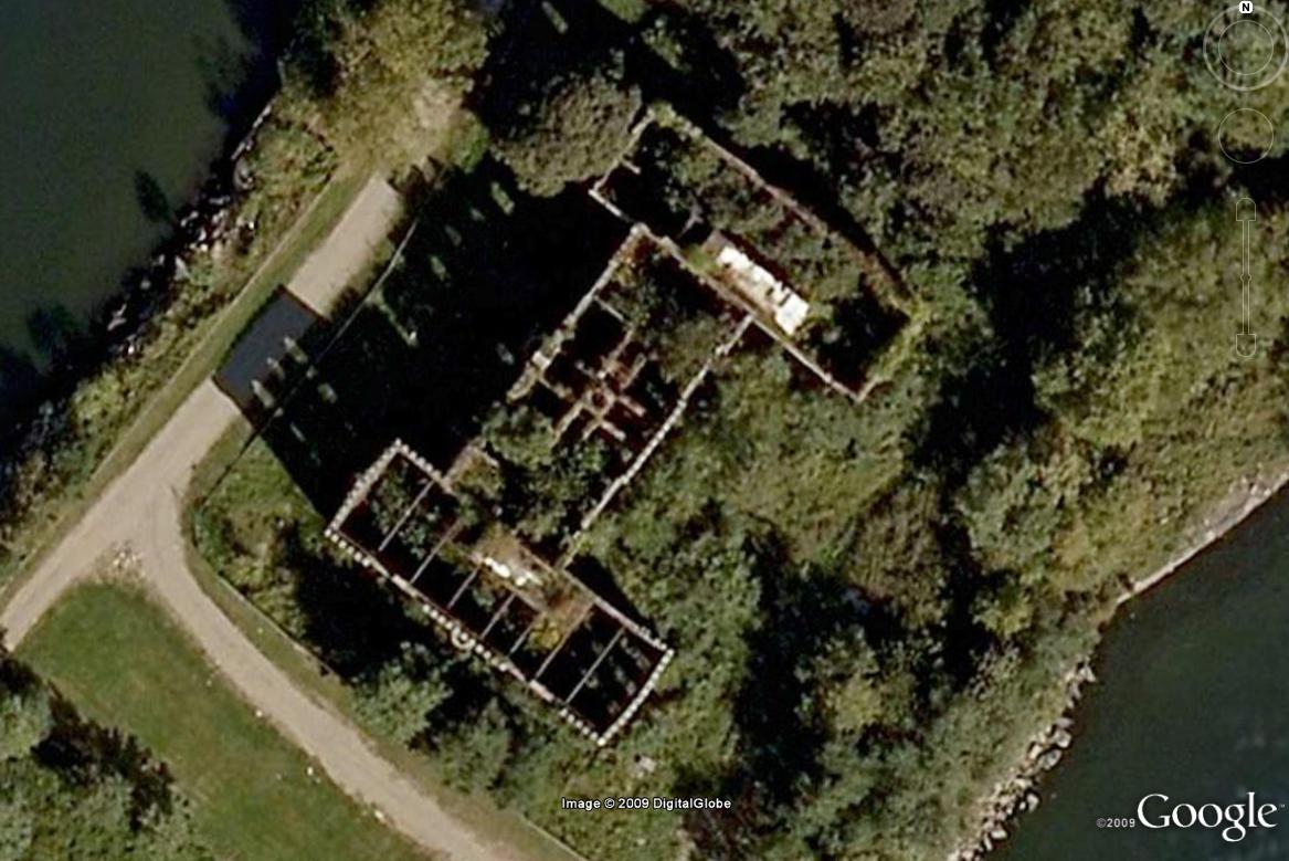 Das sind die Überreste des alten Smallpox Krankenhauses auf Roosevelt Island im East River, New York.