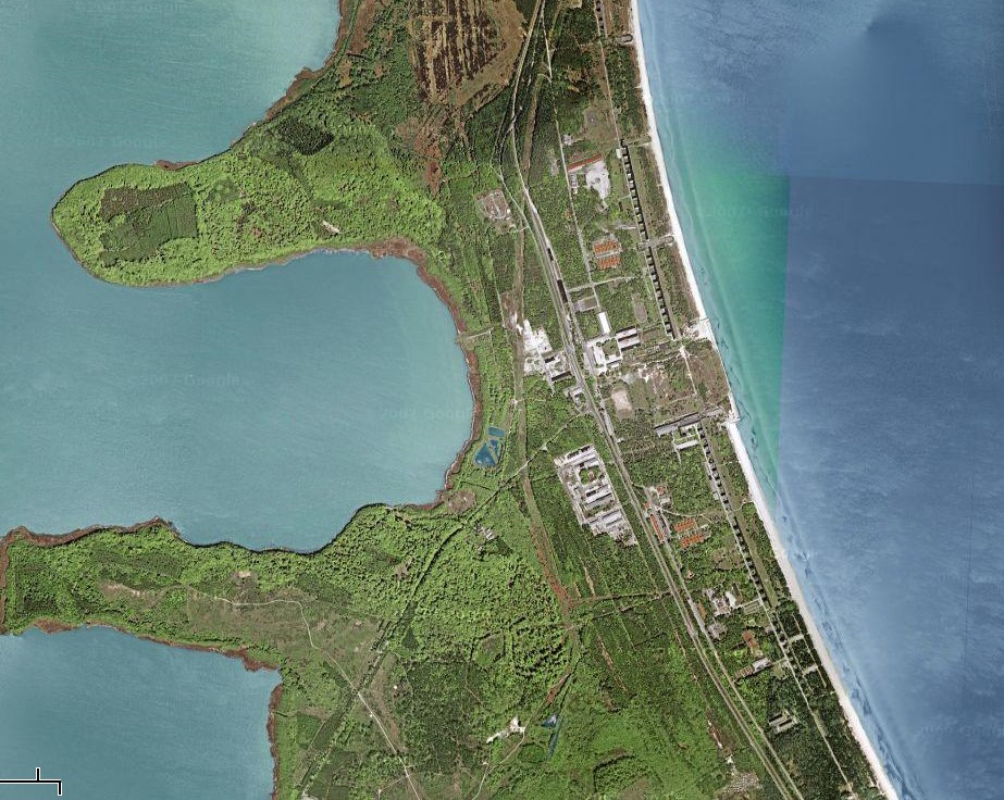 edit: Sehr wahrscheinlich ist das Seebad gemeint. Es besteht "auf einer Länge von etwa 4,5 km entlang der Küste aneinandergereihte baugleiche Häuserblocks" (q:wiki).