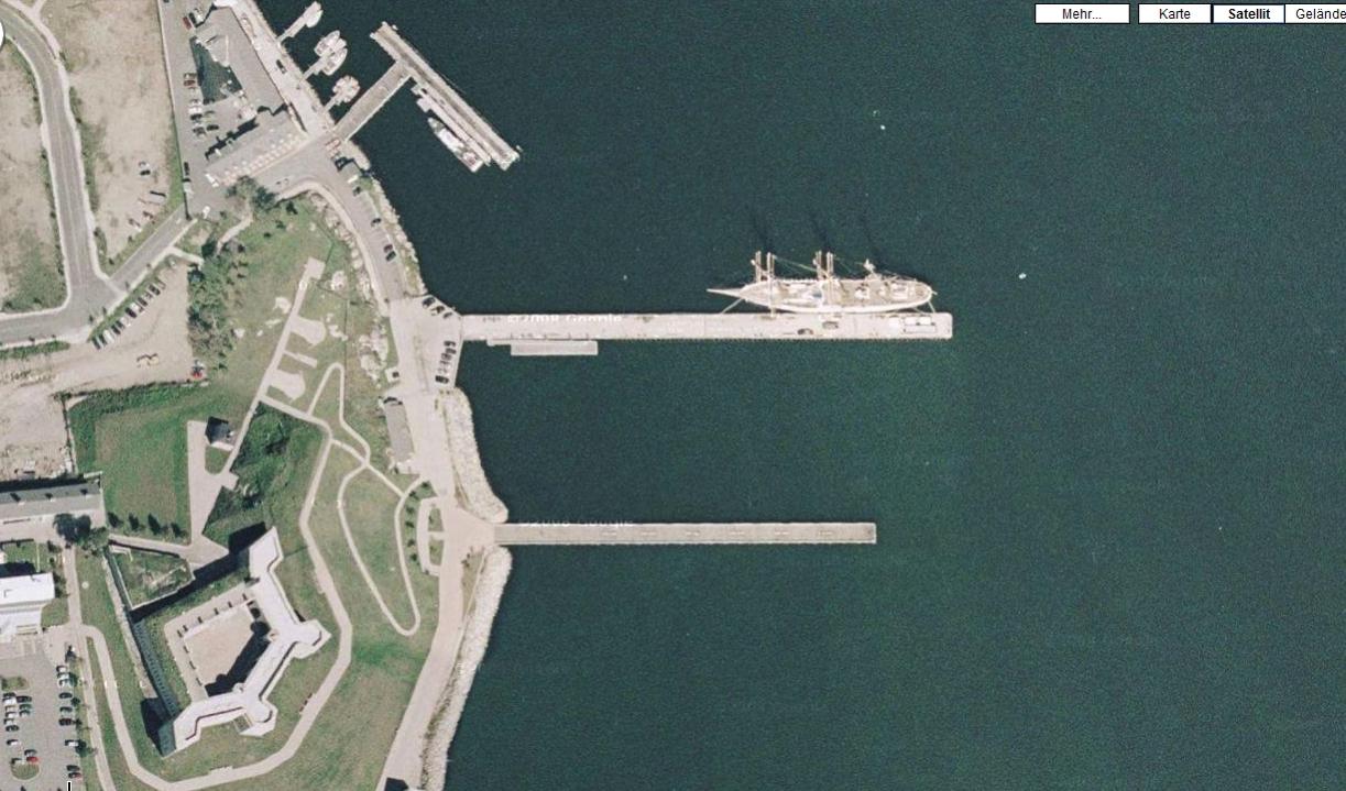 Das ist die USCGC Eagle, bzw. früher Horst Wessel ganannt (Schwesterschiff der Gorch Fock). Nach dem Zweiten Weltkrieg ging sie als Reparationsleistung an die USA. Auf dem Bild zu sehen ist sie in ihrem Heimathafen in New London. So jetzt such ich aber was.