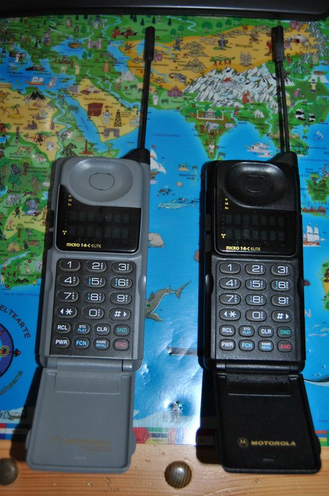 Das sind Motorola Micro TAC Elite. Die kamen 1994 auf den Markt. Ich kenne sie allerdings nur in Schwarz, graue habe ich davon noch keine gesehen. Die sind nun immerhin bald 20 Jahre alt.