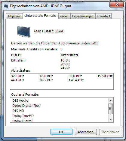 Über die Graka per HDMI ist nur Stereo verfügbar.