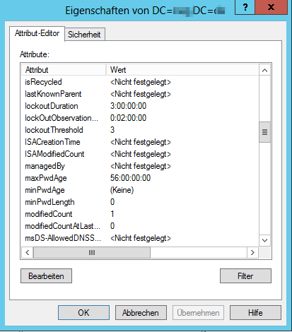 Tatsächlich geht dieser Prozess aber noch einen Schritt weiter. Ändert man auf dem PDC-Emulator die Kennworteinstellungen direkt im Domänenobjekt (dem sog. “Domain Head”), so schreibt Windows die Daten zurück in die Default Domain Policy. Dies ist der einzige bekannte Fall, in dem Windows ein GPO ohne direktes Zutun des Administrators inhaltlich verändert.