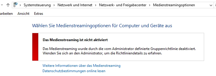 wie kann ich den Medienstreaming wieder aktivieren? Durch anklicken läßt sich das Medienstraeming nicht aktiviren.