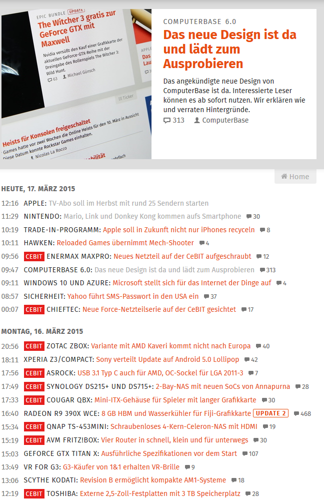 Schade. Mit blau und weiß geht CB im Meer der 08/15-Seiten unter, die das gleiche langweilige Schema benutzen. Auf mich wirkt die Startseite gesichtslos. Wenn man den CB-Schriftzug auf der Startseite ausblendet, sieht sie aus wie irgendeine x-beliebige IT-Nachrichtenseite.