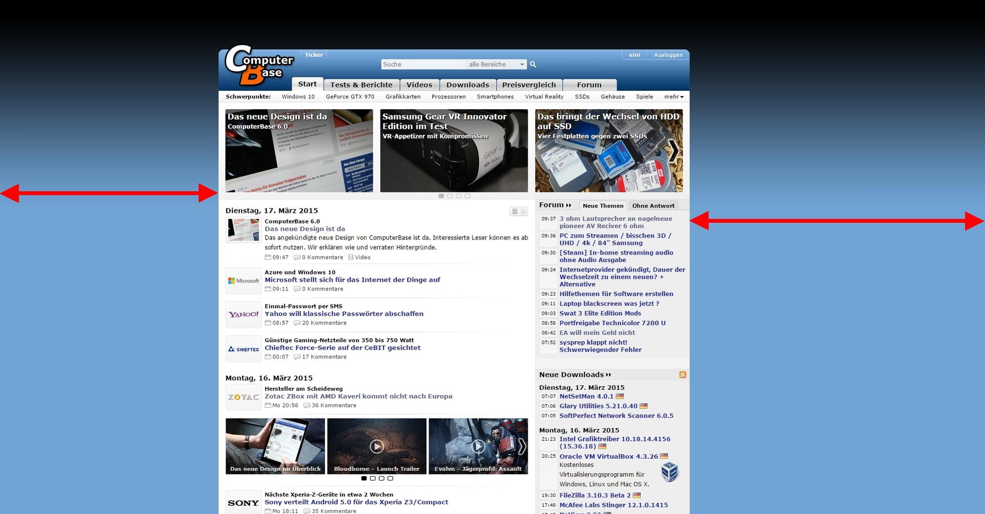 Eine Frage möchte ich aber stellen. Ist es ein geschriebenes Gesetz, dass die Inhalte von Websites nicht breiter als 1400 Pixel sein dürfen?! Kann doch nicht so schwer sein, dass die Website den GESAMTEN verfügbaren Platz nutzt!